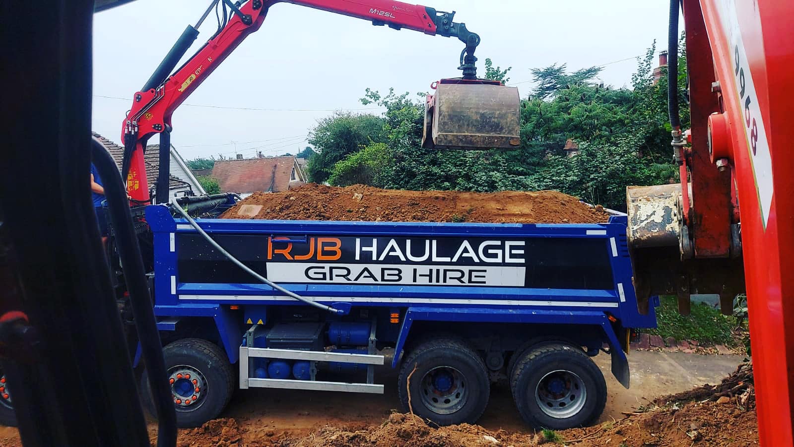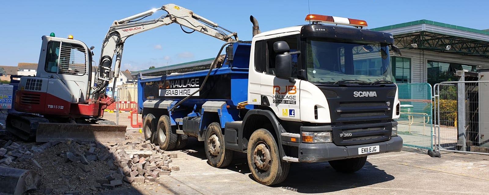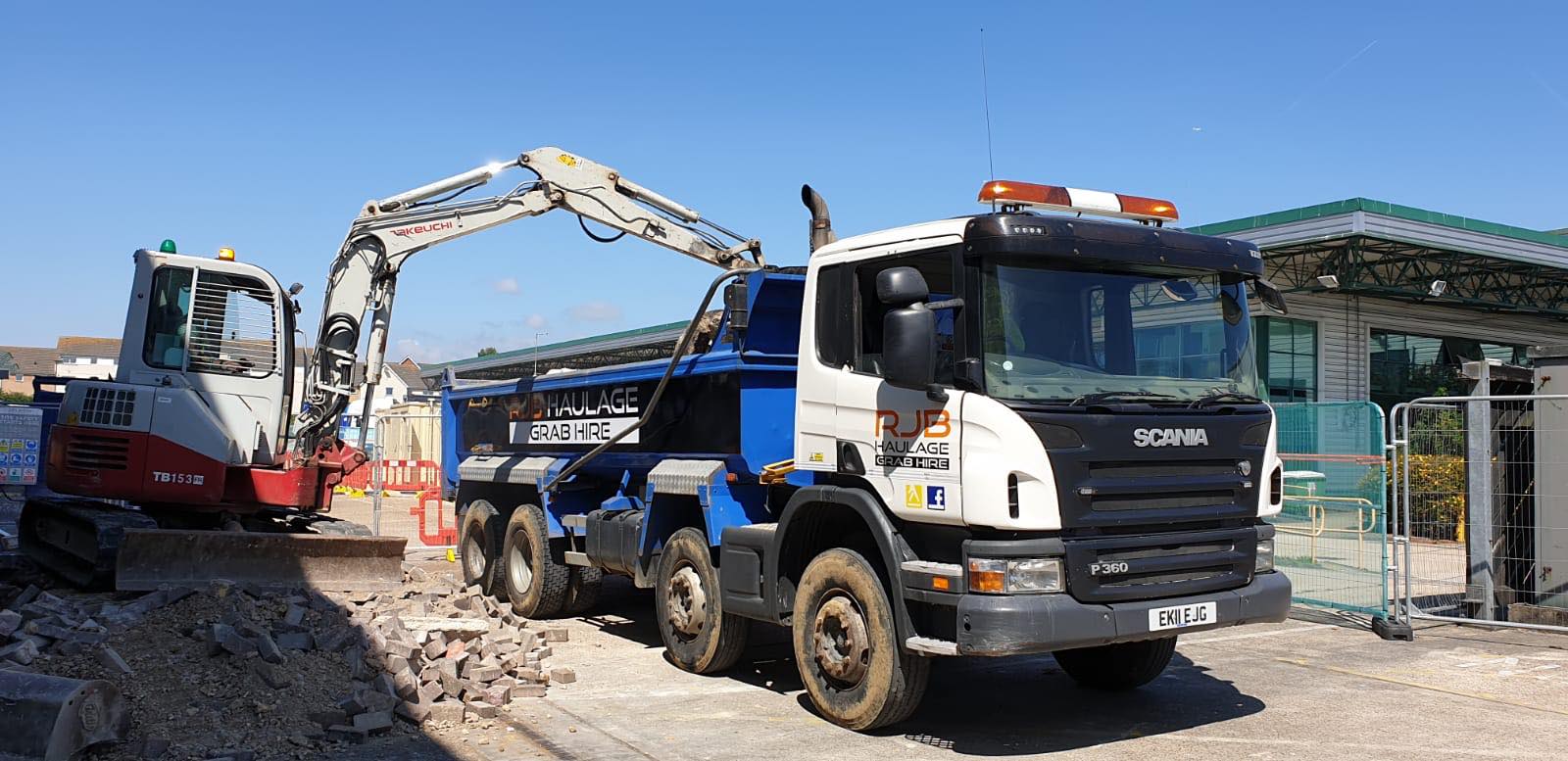 RJB Haulage & Grab Hire offers reliable and professional Grab & Tip services. Our aim is to remove your waste in the safest and cleanest way. From inert to green waste our intentions are to recycle as much of the inert waste as possible using local recycling facility’s and to re-use soils & hardcore to save use of landfills. Our 8 wheeled grab Lorry can reach as far as 6.5 meters and can hold approximately 14-15 cubic meters. (16ton)